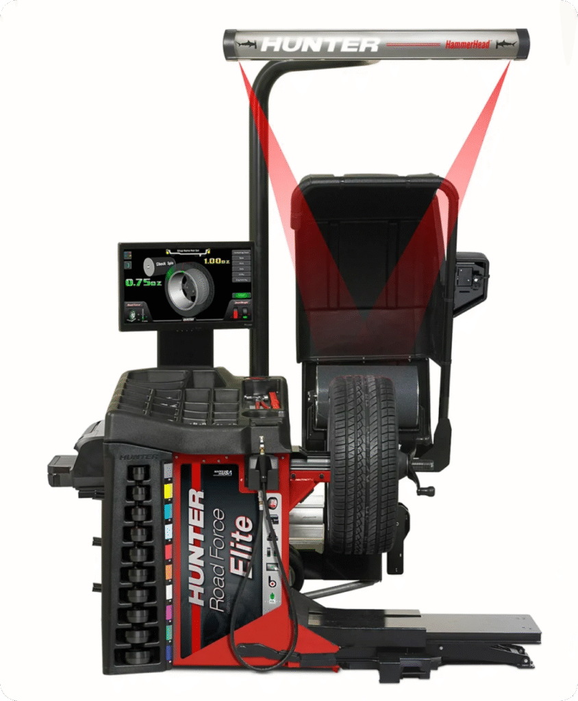 Tasapainotukset teemme markkinoiden parhaalla ja tarkimmalla Hunter Road Force Elite -tasapainotuskoneella. Kyseessä ei ole pelkkä tasapainotuslaite, vaan täysin varusteltu diagnostiikkatyökalu, joka ylittää perinteisten koneiden suorituskyvyn kaikilla osa-alueilla.